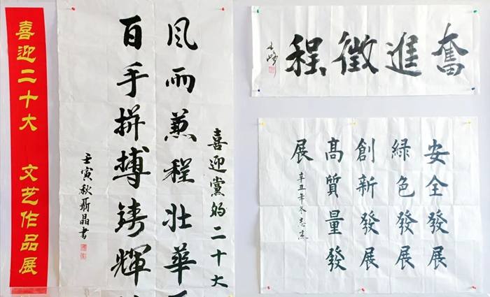 此次展览,从各单位上交的各类作品中精选出书法作品16件,摄影作品21件,绘画作品7件及手工艺作品10件进行现场展示。遒劲有力的书法作品,美不胜收的摄影作品和绘画作品,以及不同风格的手工艺作品洋溢着登录入口干部职工期盼党的二十大胜利召开的喜悦心情,也充分展现出大家丰厚的文化素养和多彩的业余文化生活。