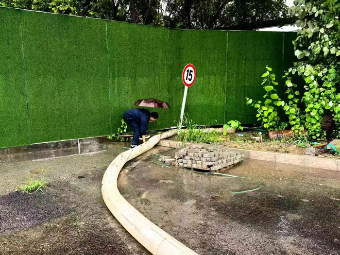 全域排查,织密安全 “防护网”。为有效排查隐患,安保部组织专业人员对园区开展“拉网式”防汛检查,重点聚焦排水系统、电力设施、危化品仓库等关键部位,清理排水管道杂物,保障雨水排放“主动脉”畅通;细致排查电力设备运行状态,筑牢供电 “稳定线”;加固危化品仓库防护措施,严防雨水倒灌引发安全风险。对检查中发现的问题,立即采取整改措施,做到不留死角、不留隐患。