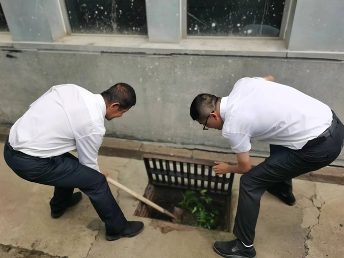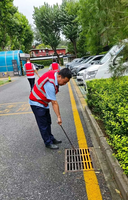 在接到暴雨红色预警后,各事业部迅速行动,对楼宇屋面、排水管道、下水井等进行细致检查,及时清理杂物,同时各事业部迅速将防汛物资补充到可能发生汛情的低洼位置,以便出现险情第一时间救援。